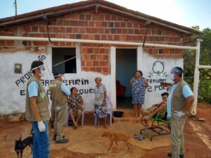 Agentes de Endemias e comunitários de saúde estão indo casa a casa fazendo as orientações, entregando máscaras e aferindo a temperatura corporal.