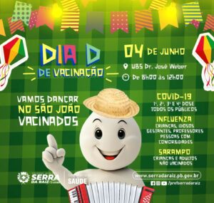 Arraiá da Vacinação, neste sábado dia 04 de Junho na unidade de saúde do centro da cidade.