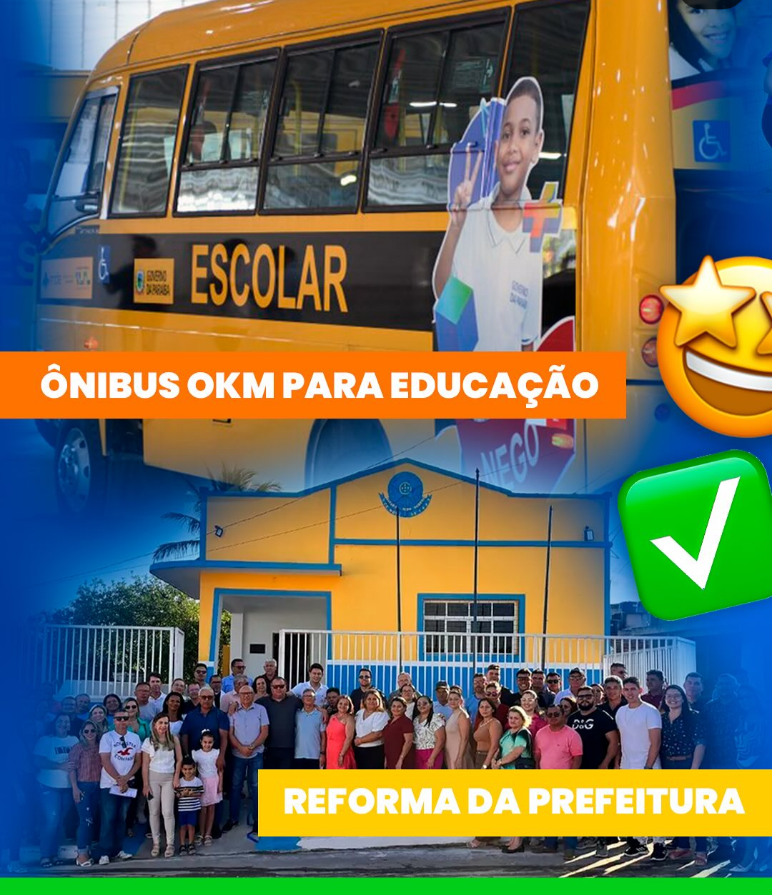 De ônibus novo para a educação, reforma da sede da Prefeitura, prêmios e valorização dos professores, à entrega de material escolar, nova escola, cursos para juventude e muito mais!