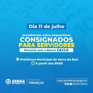 Você que é funcionário público efetivo, uma equipe da caixa econômica federal estará no próximo dia 11 em nosso município para realizar a avaliação de empréstimo consignado.