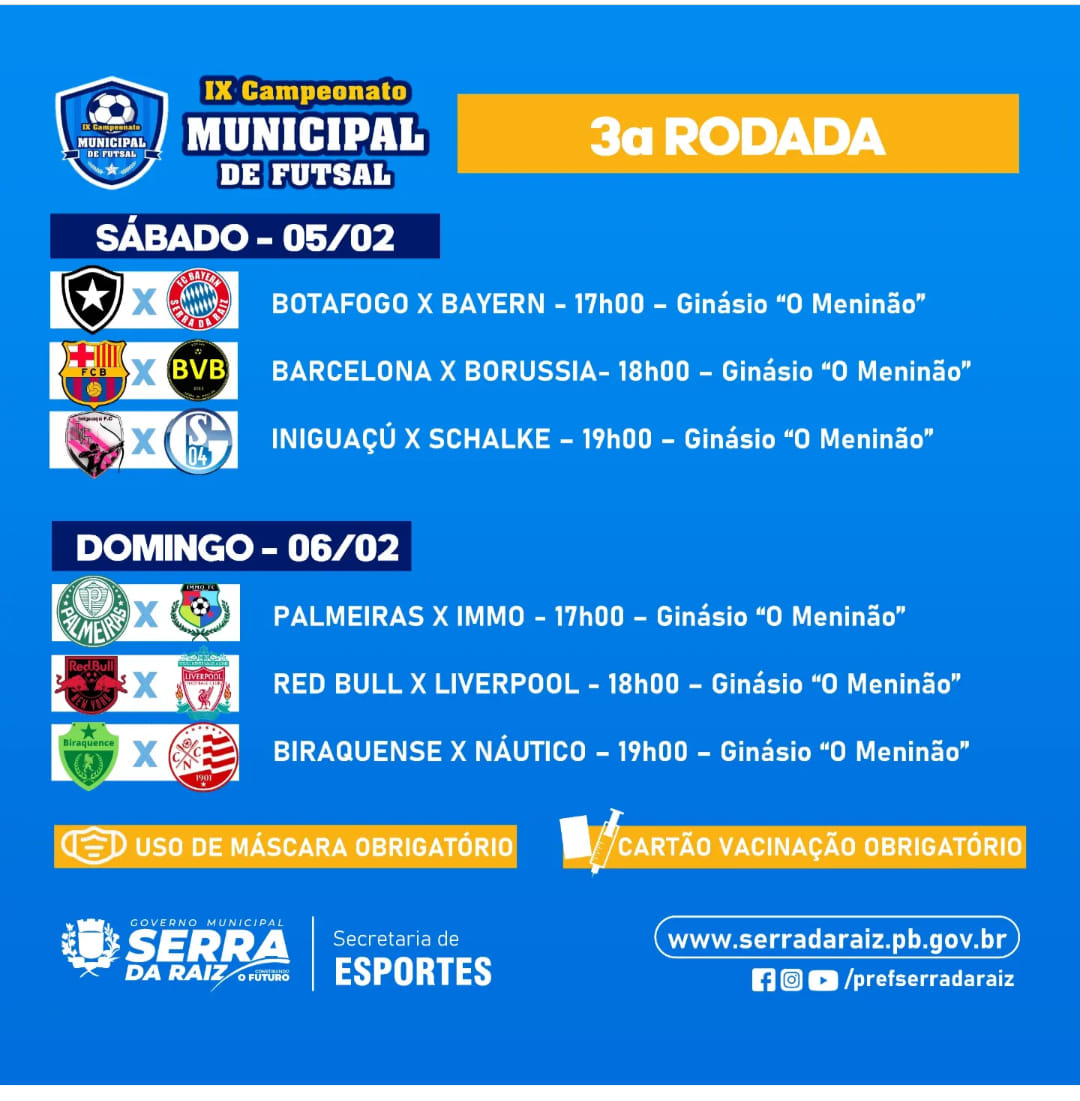 Confira jogos da terceira rodada do campeonato de futsal