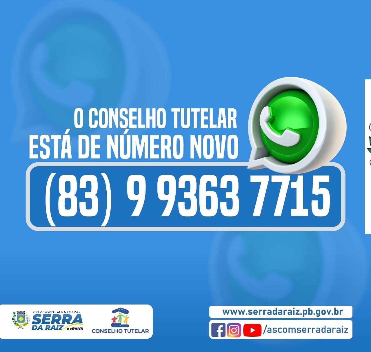 Você que precisa de atendimento junto ao conselho tutelar pode fazer via whatsapp ou ligação, é garantido o sigilo.