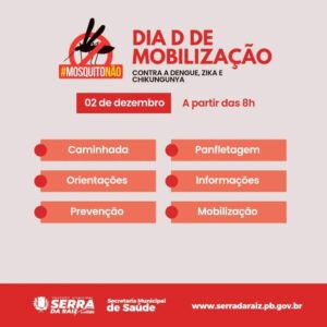 Nesta sexta-feira (02) é dia D de mobilização para conscientizar a população a respeito do combate ao mosquito Aedes aegypt, transmissor da dengue, zika e chikungunya.