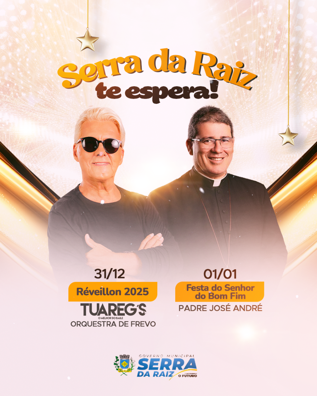 A gestão municipal anunciou nesta quinta-feira (12) as atrações do réveillon 2025 e da festa de Nosso Senhor do Bom Fim, padroeiro do município. A festa será dias 31 e 01 de janeiro.