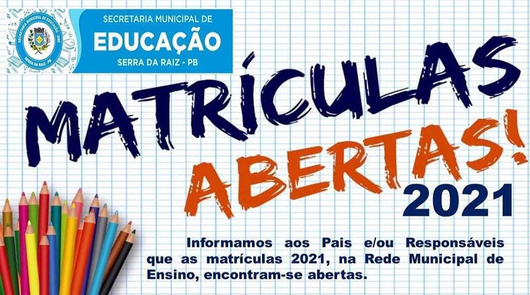 A prefeitura municipal através da secretaria de educação informa aos pais e responsáveis que as matriculas da rede municipal de ensino já estão abertas para o ano letivo 2021.