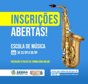 A gestão municipal através da Secretaria de Cultura abriu as inscrições para a escola de música Joaquim Menezes.