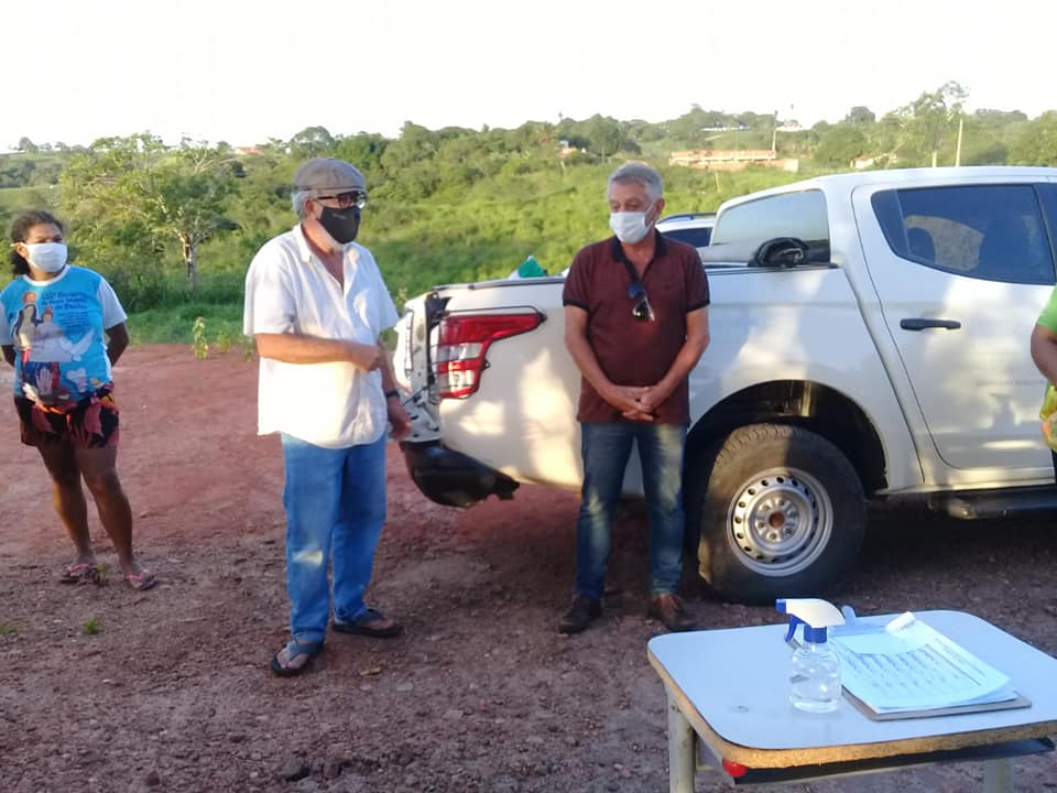 O prefeito Luiz Machado ao lado do secretário de agricultura Edson Miguel e o do representante da Empaer, realizaram a entrega de sementes em em todas as comunidades rurais.