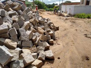 Está sendo feito o trabalho de esgotamento e calçamento, a equipe de trabalho está avançando na obra.
