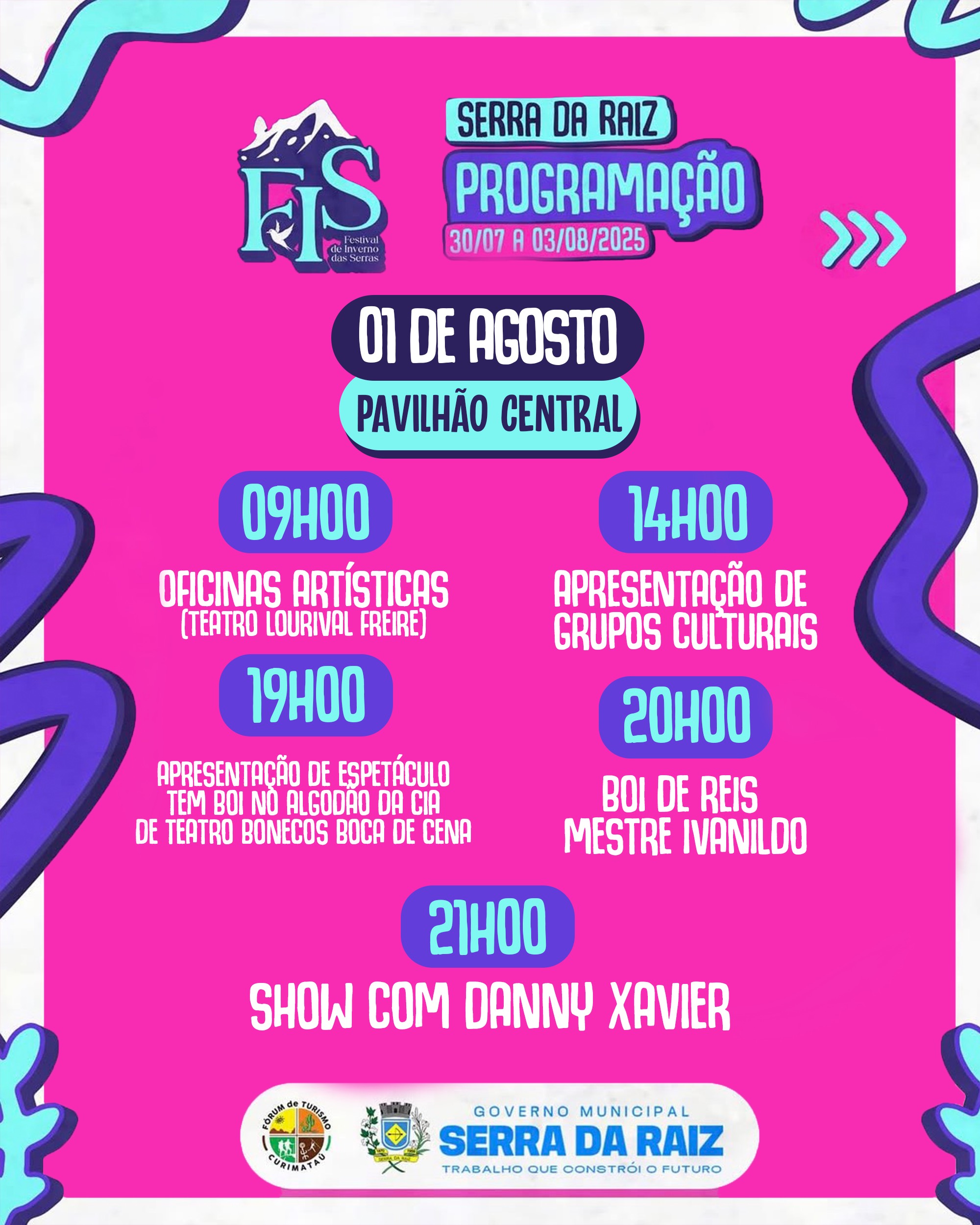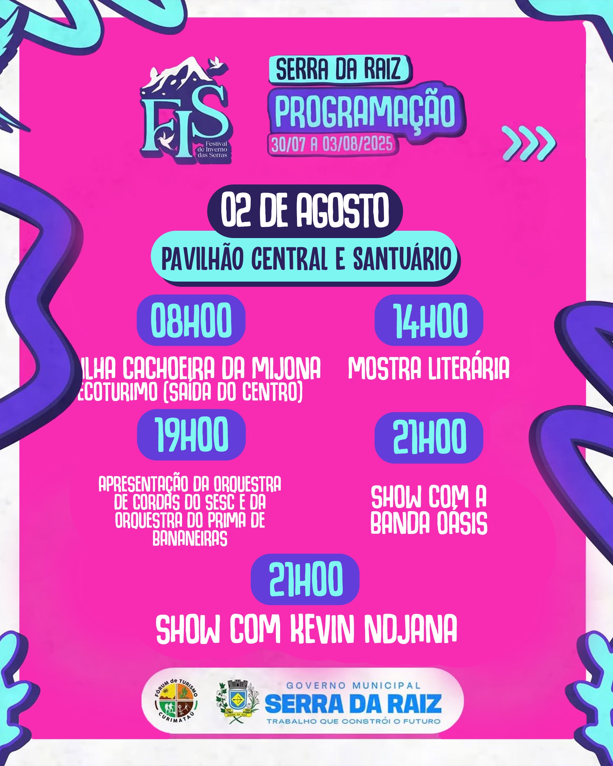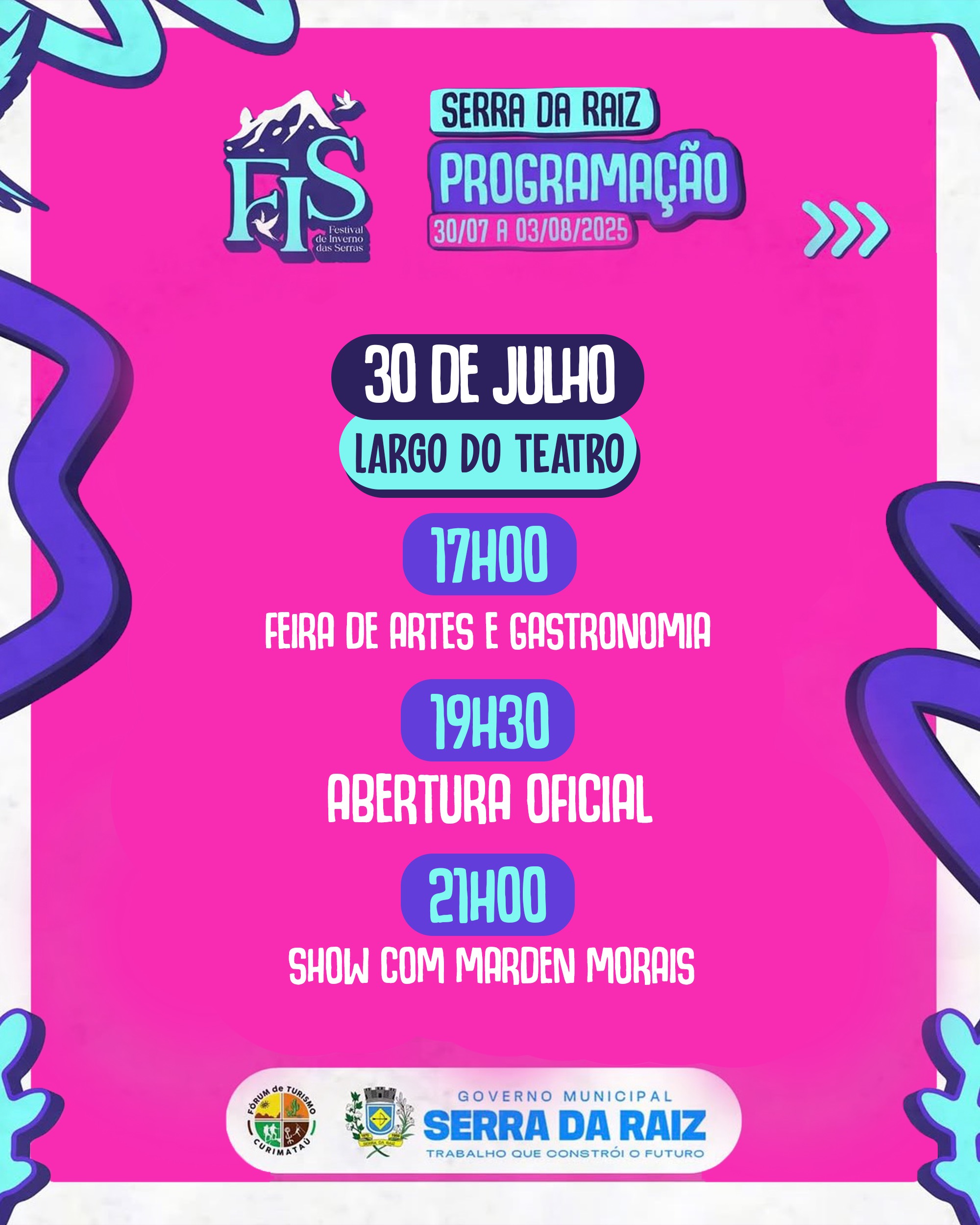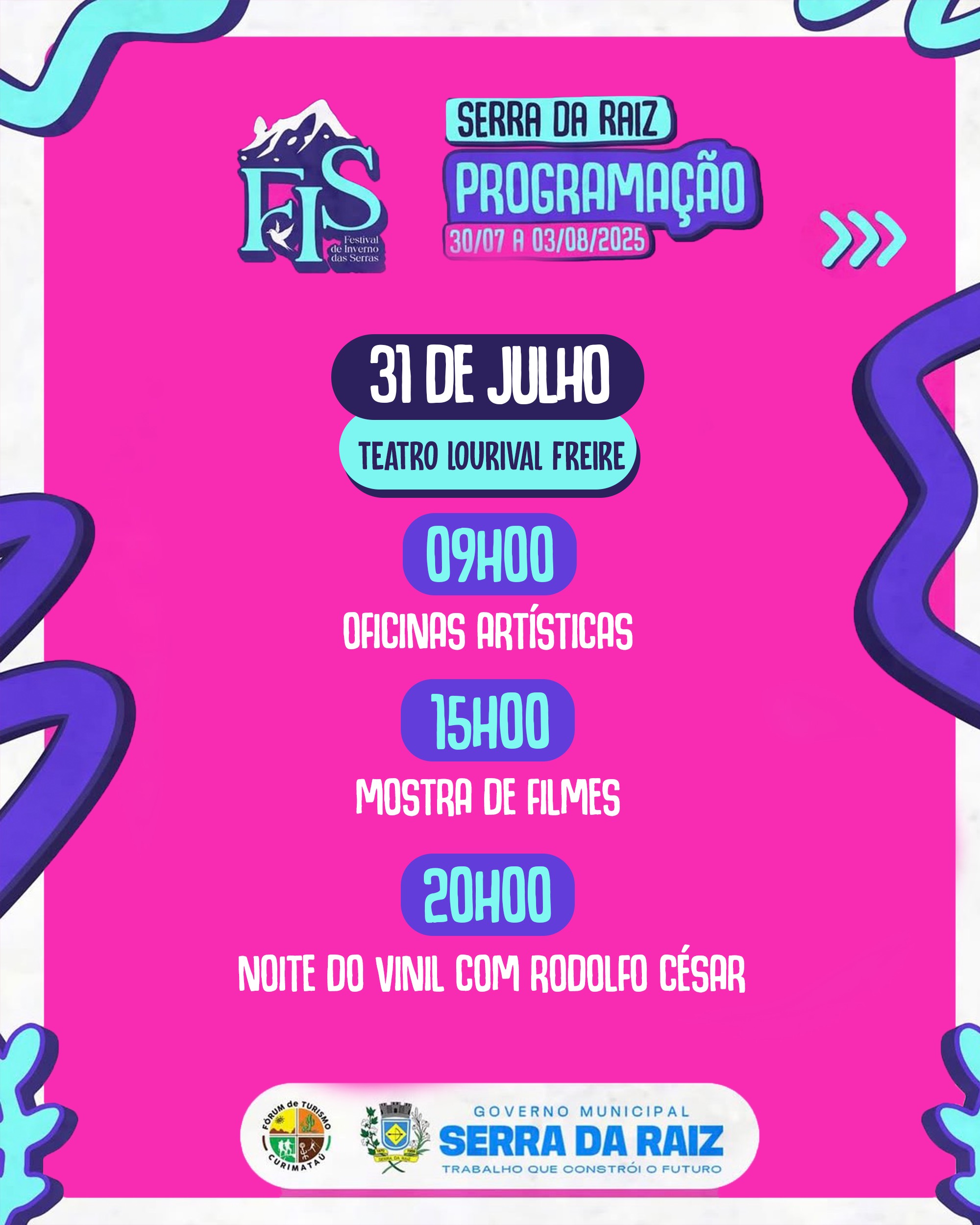 A gestão municipal por meio das secretarias de Turismo e Cultura, realiza de 30 de julho a 03 de agosto o FIS (Festival de Inverno de Serra da Raiz), um roteiro que vai levar a boa culinária, arte, música, cultura e muito mais.