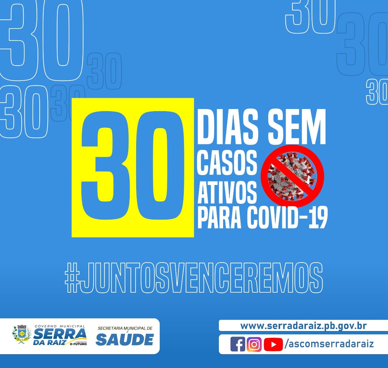 Há 30 dias não registramos casos Ativos para Covid-19, é fruto de um trabalho dedicado e para isso contamos com a colaboração de cada serrano (a), vamos manter os devidos cuidados para que juntos possamos vencer.