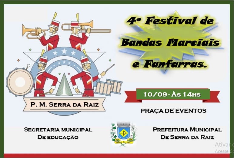A gestão municipal através da secretaria de educação estará realizando nesta terça-feira (10), o 4º Festival de Bandas e Fanfarras alusivo a Independência do Brasil.