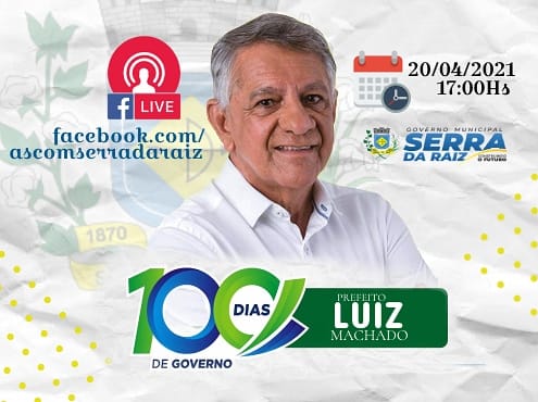 Nesta terça-feira (20) as 17hrs o prefeito Luiz Machado estará conversando com você através de nossa página no Facebook e prestando contas dos 100 primeiros dias de governo.