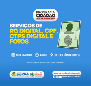 A gestão municipal através de uma parceria com a Secretaria de Desenvolvimento Humano do governo da Paraíba, estará realizando a emissão de documentos através do Programa Cidadão.