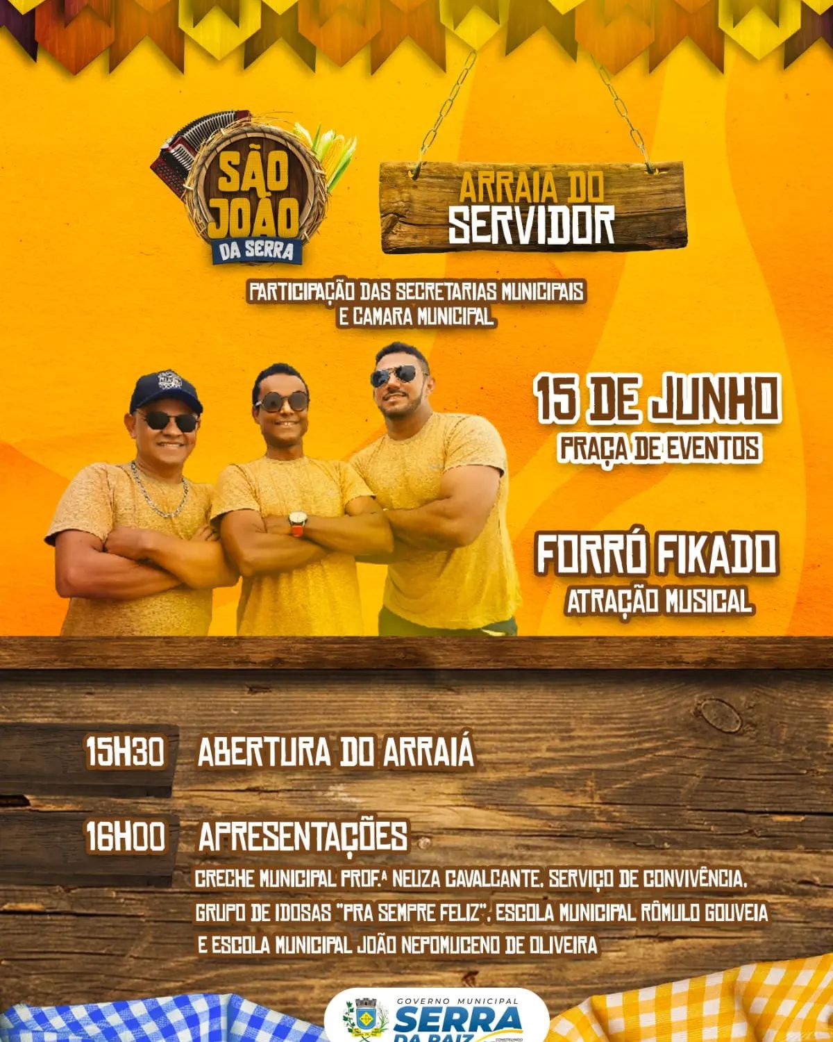 Na quarta-feira (15) teremos o Arraiá do Servidor dentro da programação do São João Mais Aconchegante da Paraíba, realizado pela gestão municipal.