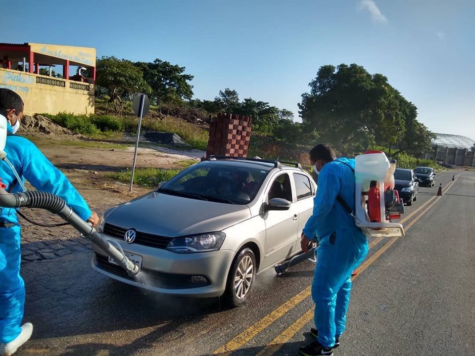 Barreira Sanitária com higienização de veículos e aferição de temperatura.