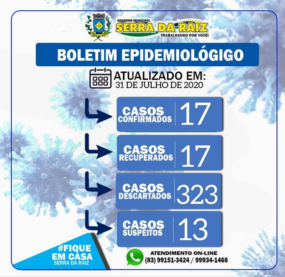 Saúde divulga boletim do cornavírus para este dia 31/07
