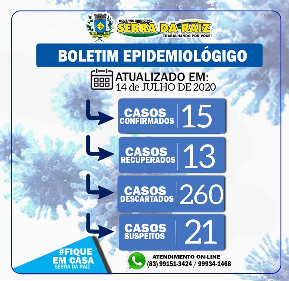 Após a realização de mais 16 testes 2 pessoas foram confirmadas com a Covid-19, chegando assim a registrar 15 casos, destes mais um recuperado chegando a 13 com apenas 2 ativos e 260 descartados.