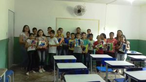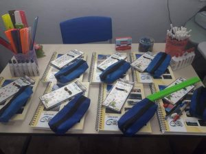 A secretaria está realizando a entrega a todo alunado da rede municipal o kit completo, um detalhe é a personalização dos cadernos com imagens de Serra da Raiz e o Hino municipal.