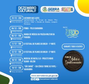 A gestão municipal através das secretarias de Turismo e Cultura lançou a programação do Dezembro Cultural, marcando o retorno dos eventos culturais e turísticos de forma presencial e com protocolos de segurança devido a pandemia.