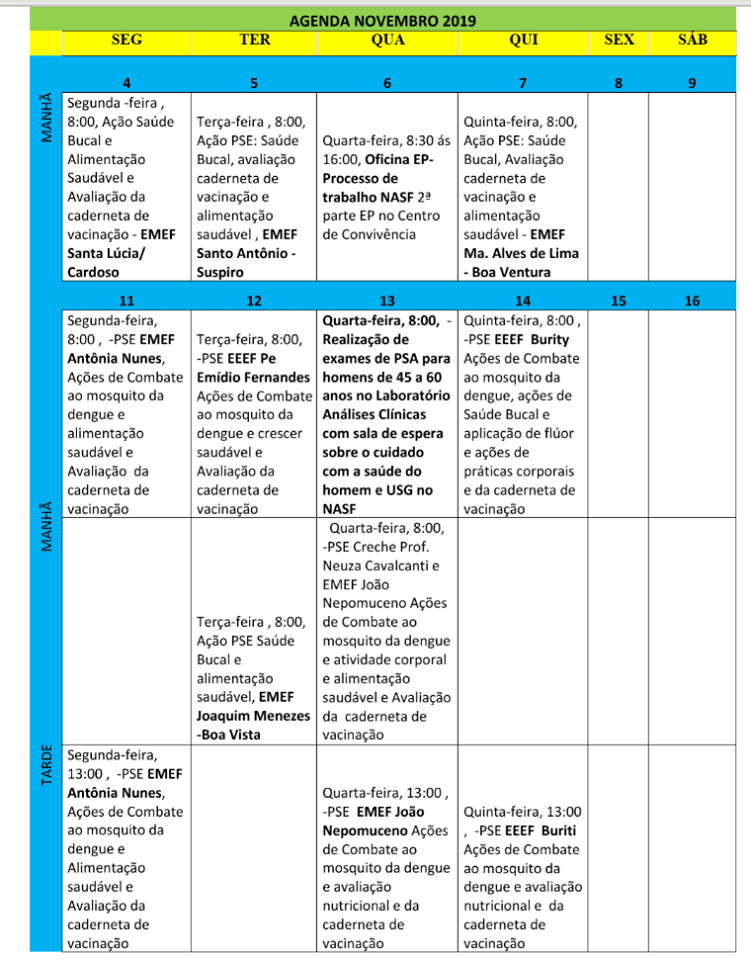 As agendas também contemplam ações prioritárias do Programa Saúde na Escola-PSE, Campanha Nacional contra o Sarampo, Plano de Saúde Sexual e Reprodutiva e Saúde do homem.