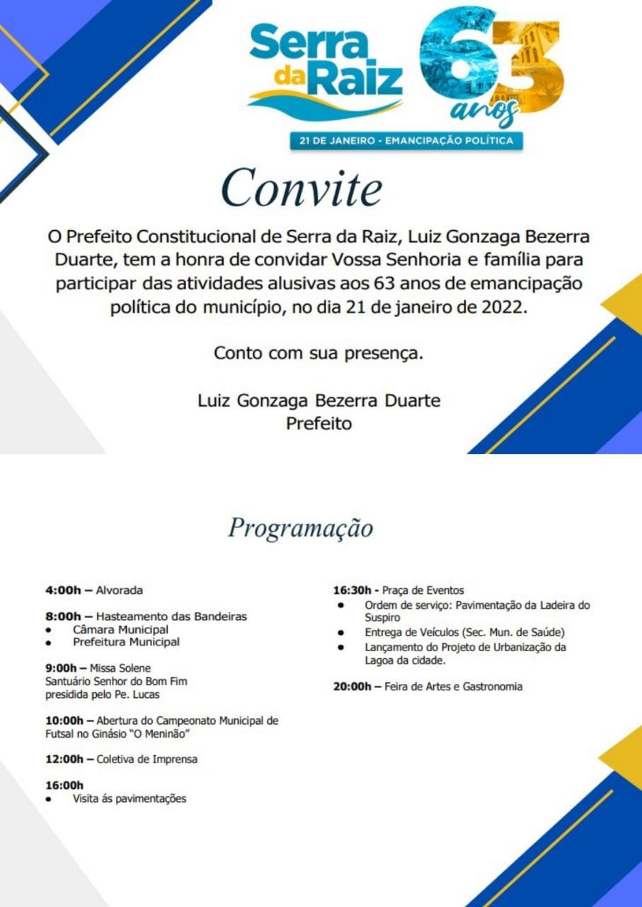 A gestão lançou a programação de emancipação política do município que na sexta-feira (21), completa 63 anos.